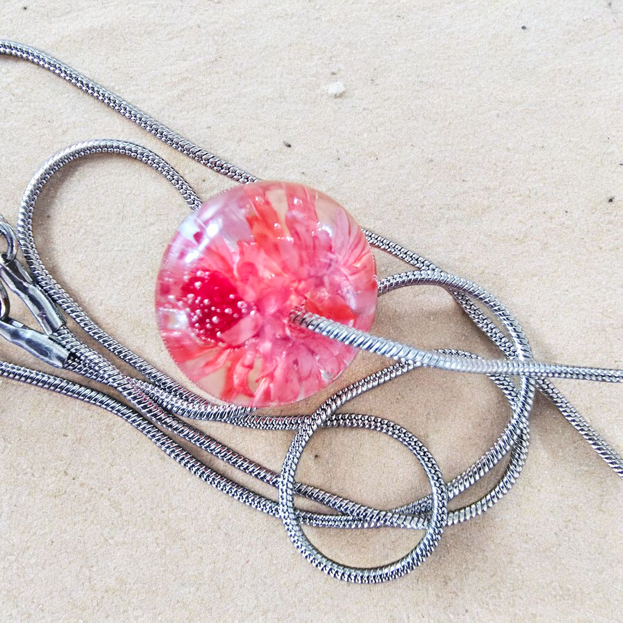 * Beautiful Red Flower Resin Donut Shaped Necklace